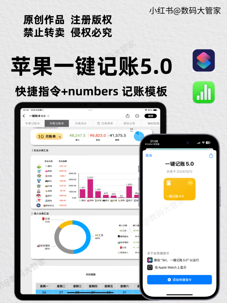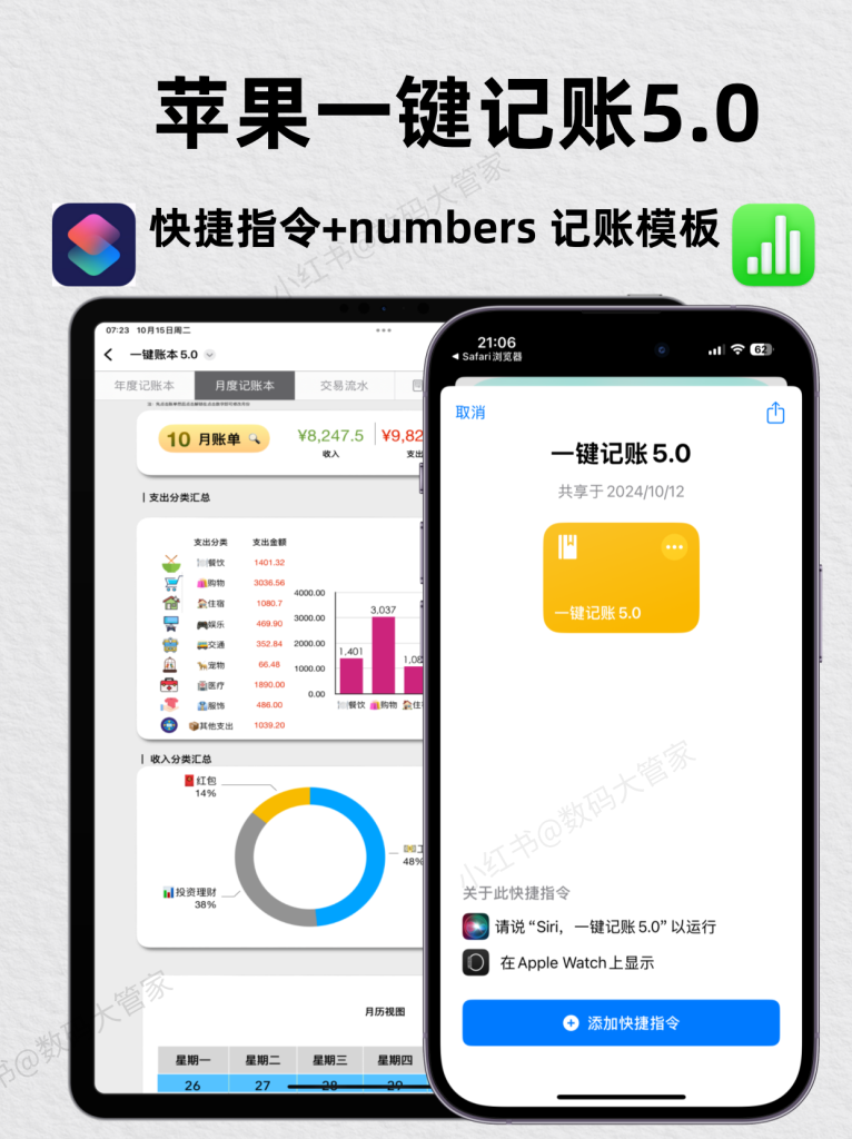 苹果手机自动记账5.0快捷指令和numbers记账本模板